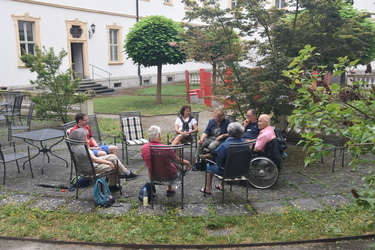 Nach einem gemeinsamen Mittagessen im Kloster stand der Nachmittag der AGkE-Wallfahrt dann traditionell im Zeichen des Kennenlernens der gastgebenden Einrichtung. Dazu wurden sechs verschiedene Workshops angeboten, die unter anderem von einer Kräuterführung durch den Klostergarten über eine Klosterführung und ein Gesprächsangebot bis hin zu mediativem Tanz reichten. Auch hierzu hatten die Schwestern des Klosters Oberzell ein buntes und abwechslungsreiches Programm für ihre Gäste zusammengestellt, das von den Teilnehmenden begeistert angenommen wurde.