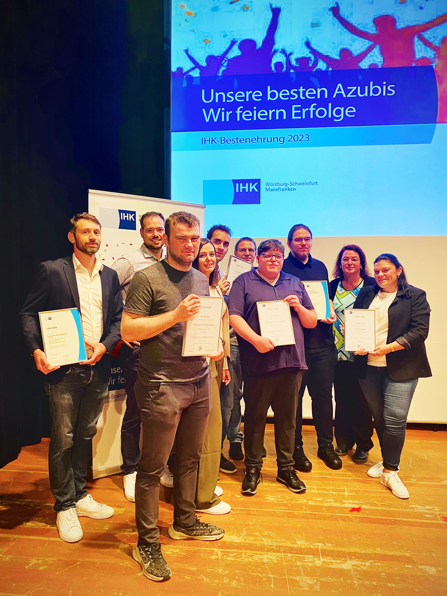 Begleitet von ihren Ausbilderinnen und Ausbildern, Benedikt Wohlfart (Metalltechnik), Martina Stolzenberger (Hotel), Stephanie Rödig (Büro), Christof Keller (Elektrotechnik) sowie Claudia Graf vom Sozialpädagogischen Fachdienst und Lehrer Michael Ebert von der Don Bosco Schule, kamen sie mit vielen Eindrücken von der Bestenehrung aus Hassfurt zurück. Besonders erfreulich ist, dass alle vier bereits einen Arbeitsvertrag in der Tasche haben und direkt bei HQW Precision in Kürnach, im Karl Schnell Werk Creglingen, im Maritim Hotel in Würzburg sowie im Caritasverband der Diözese Würzburg beruflich durchstarten beziehungsweise eine weitere Ausbildung anschließen.