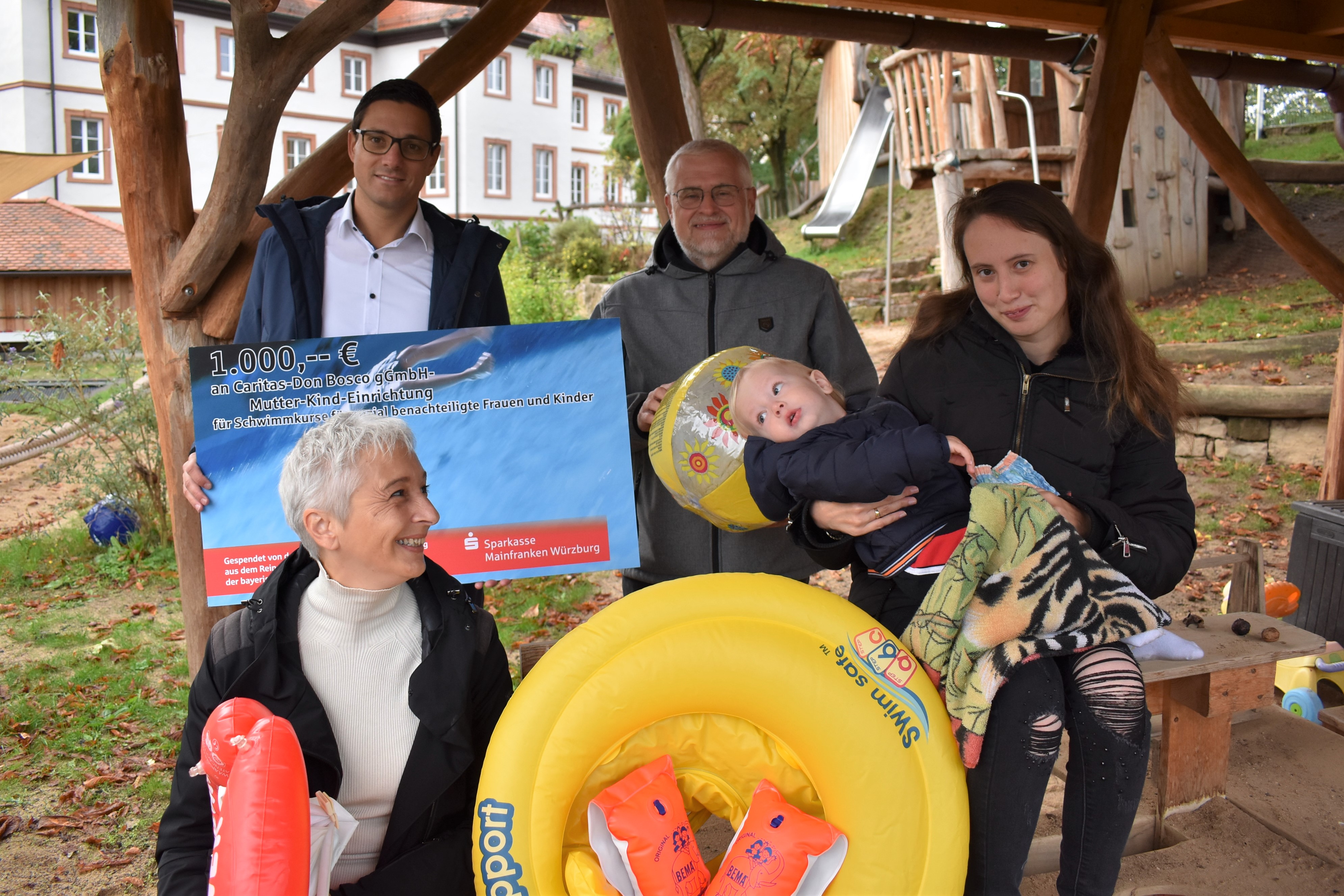 Über eine Spende von 1000,00 Euro der Sparkasse Mainfranken freut sich die Mutter-Kind-Abteilung der gemeinnützigen Caritas Don-Bosco GmbH. Die Zuwendung wird für Baby-Schwimmkurse und weitere Freizeitangebote für Mütter und ihre Kinder in dem Würzburger Bildungszentrum verwendet.