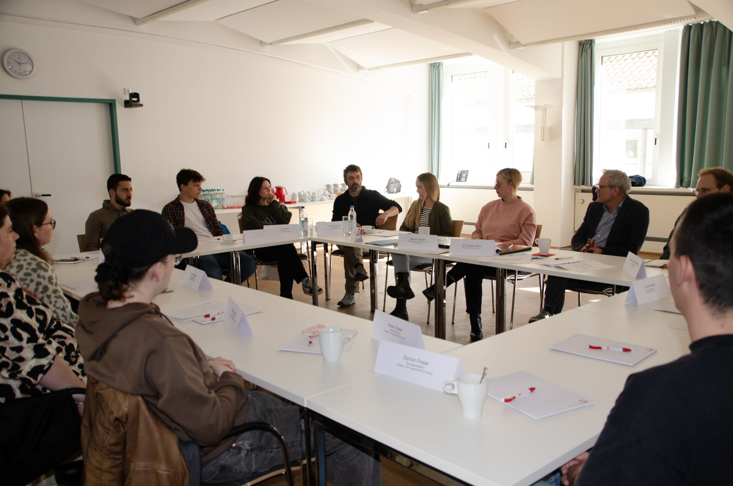 „Wir arbeiten alle in einer katholischen Einrichtung der Jugendhilfe“, begrüßte Dr. Norbert Beck, Gesamtleiter SkF Würzburg e. V., gemeinsam mit Sabrina Göpfert, AGkE-Geschäftsführerin und Referentin Familien- und Jugendhilfe im DiCV, die elf Teilnehmenden, die der Einladung zum zweiten Treffen der Berufspraktikantinnen und -praktikanten gefolgt waren und machte damit deutlich, was alle verbindet. Unter ihnen waren sieben Berufspraktikantinnen und -praktikanten sowie vier Praxisanleitungen aus drei verschiedenen Einrichtungen wie dem Kinder- und Jugenddorf St. Anton in der Rhön, dem Goldenen Kinderdorf und dem Therapeutischen Heims Sankt Josef (THSJ) in Würzburg. Das Treffen solle dem Austausch und der Berichterstattung dienen, so Beck weiter. In der AGkE-Fachgruppe „Stationäre Jugendhilfe“ sei man auf die wertvolle Rückmeldung der späteren Fachkräfte unbedingt angewiesen, um Strategien für die Zukunft entwickeln zu können.